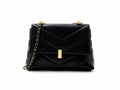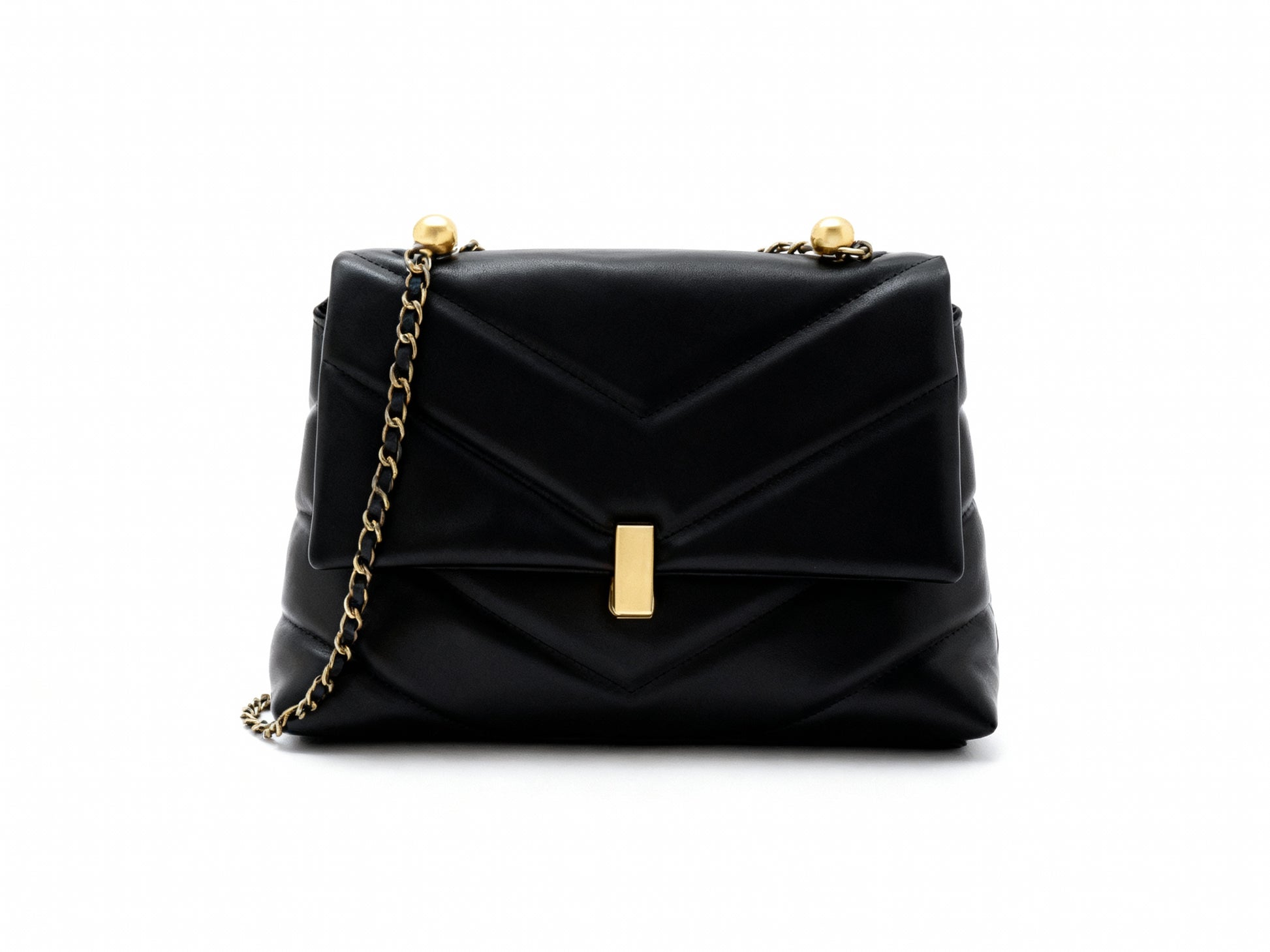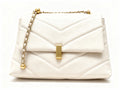 This chevron quilted bag lends interesting angles while bringing out the naturally supple feel of this vegan-leather flap bag. Versatile convertible leather/chain strap styling with rolling ball to adjusts to your perfect length.